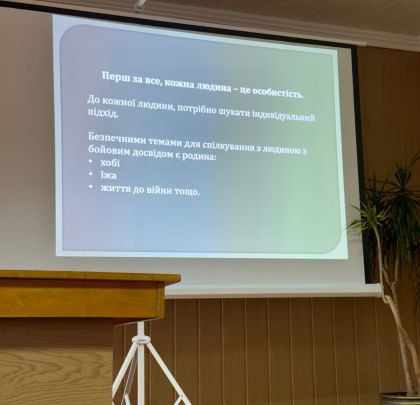У нашому закладі відбулася лекція на тему “Спілкування з людьми, що мають бойовий досвід”.